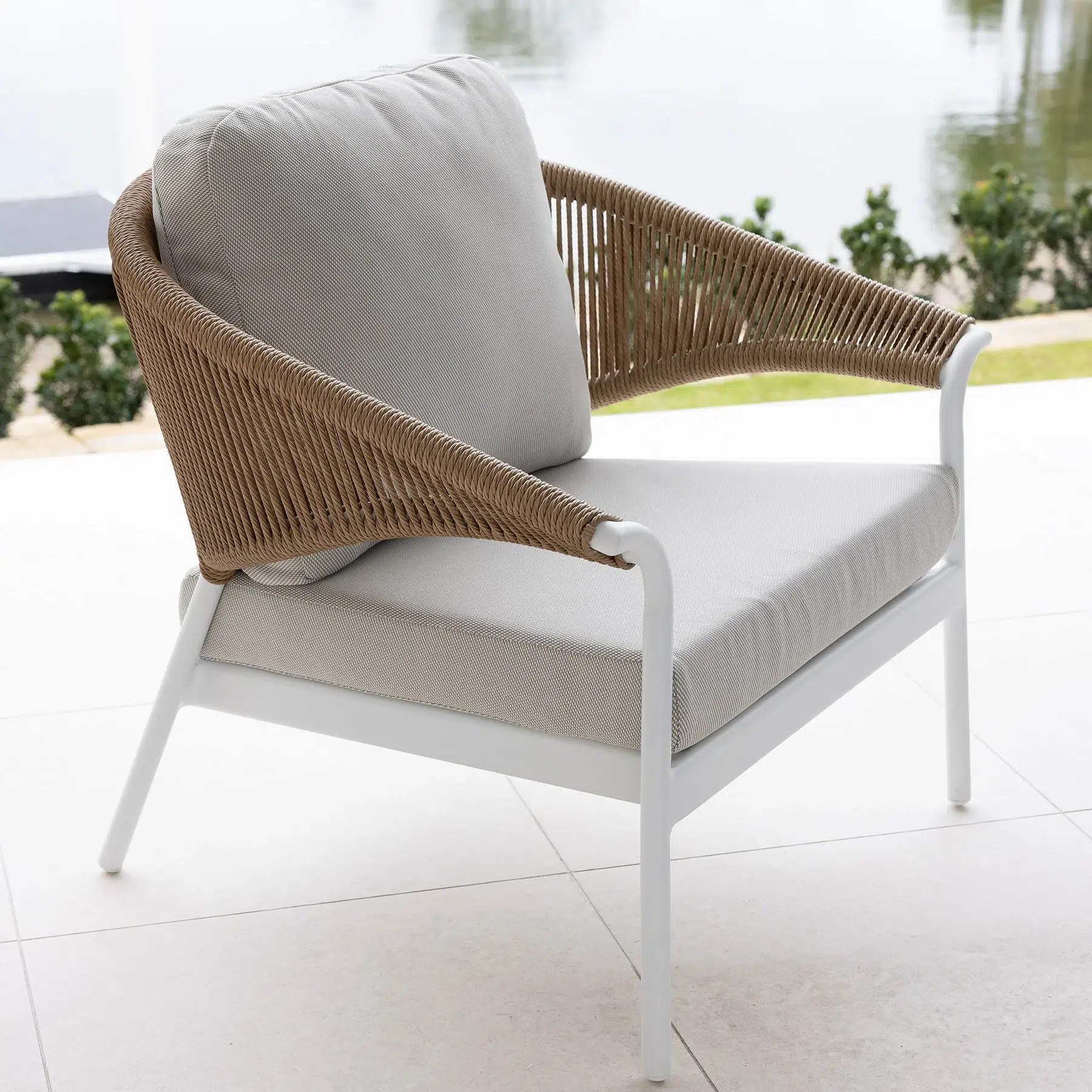 The lightweight yet durable powder coated aluminium frame provides year round resilience — completely rust free and designed to handle Queensland’s coastal conditions with ease. Each piece is handwoven with premium PE wicker in a fashional rope design, showcasing soft curved silhouettes that bring a sense of calm and sophistication to your outdoor space.
