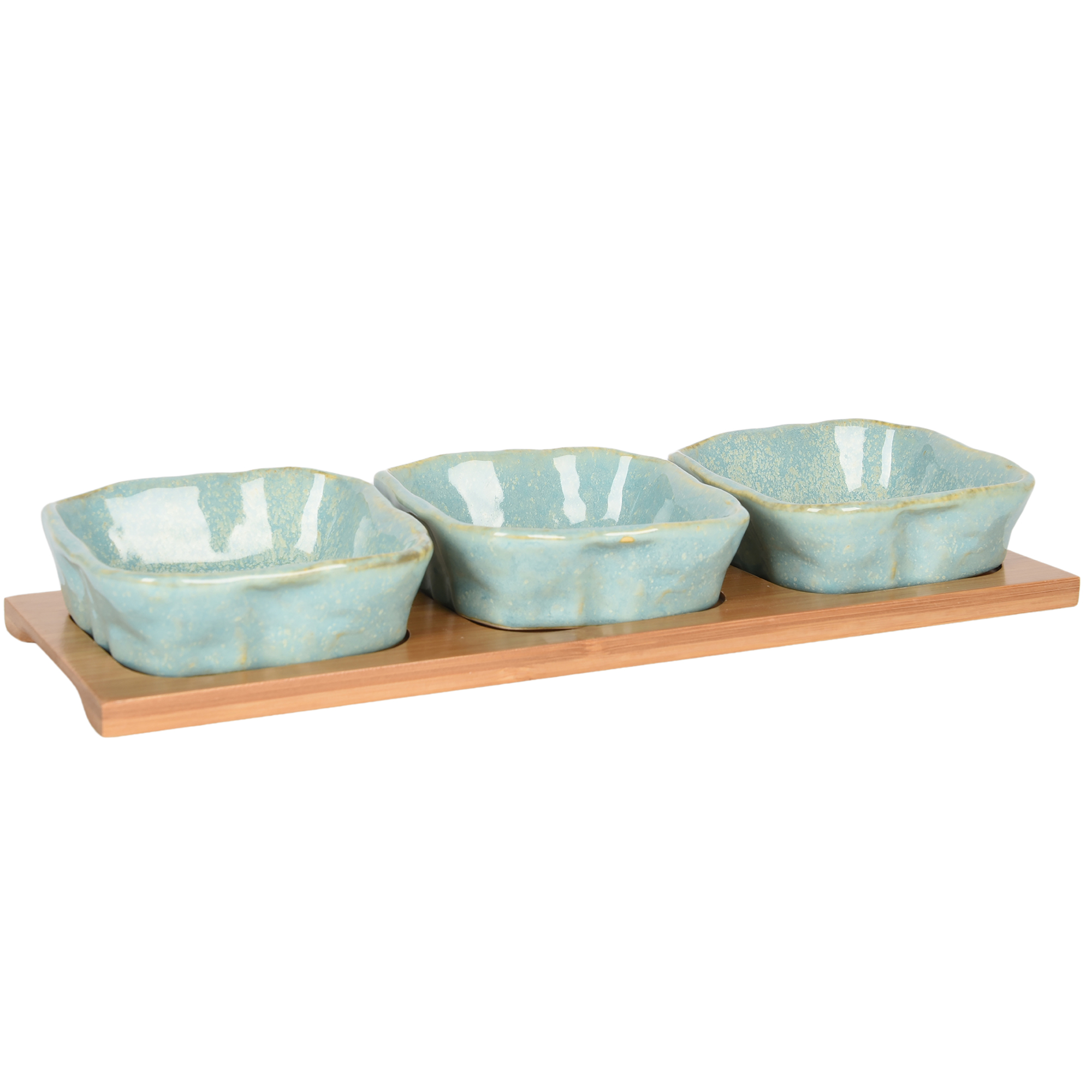 These gorgeous square bowls fit stylishly on the bamboo tray. They are perfect condiment bowls and are both elegant and functional. These are definitely an essential for outdoor entertaining. Use this at your next barbecue. Available in 2 colours.