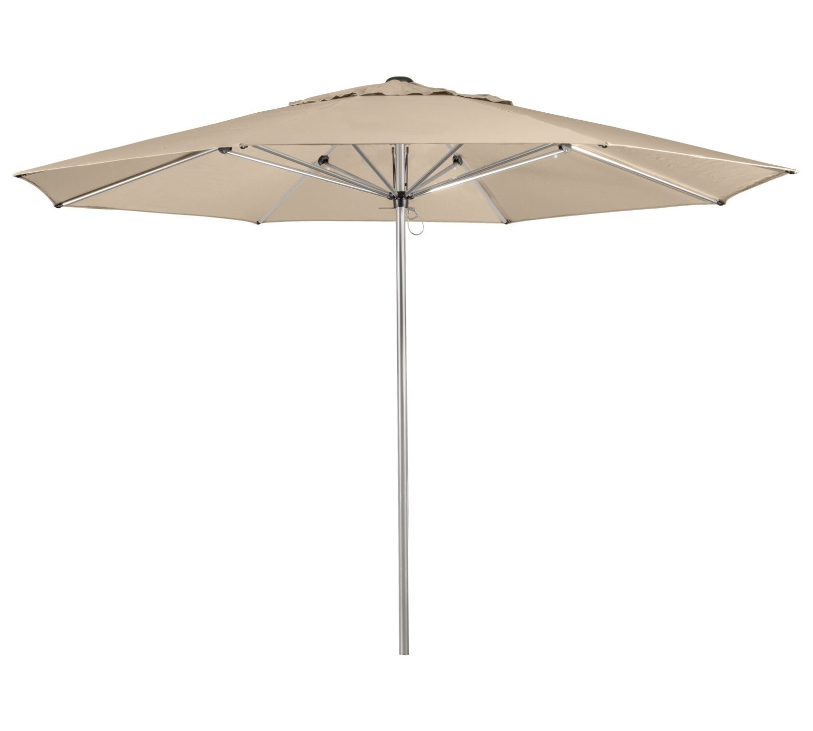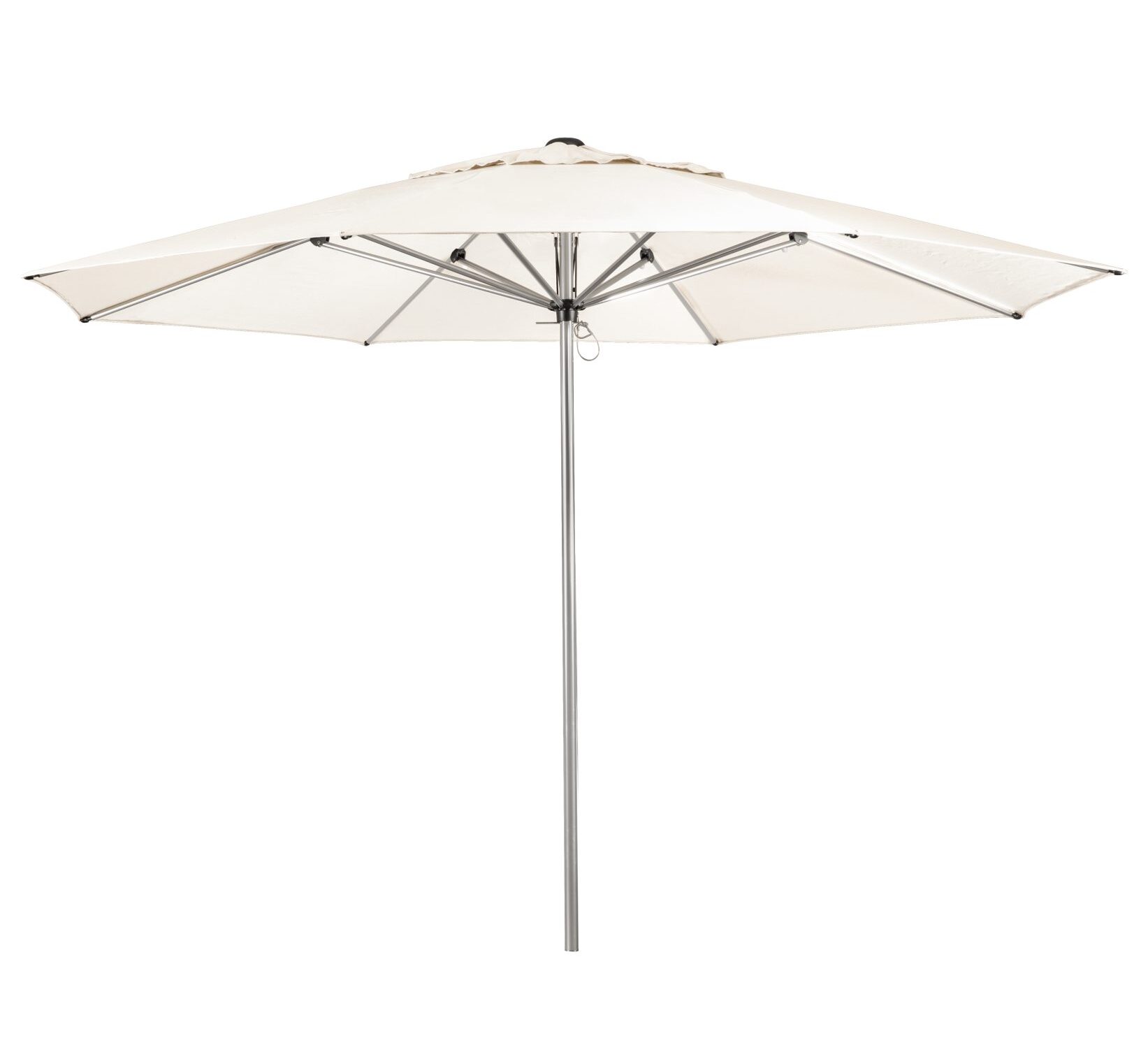 The Coolum umbrella is particularly distinctive with its mirror finish, anodized aluminium frame and quality aluminium, stainless steel and resin fittings.