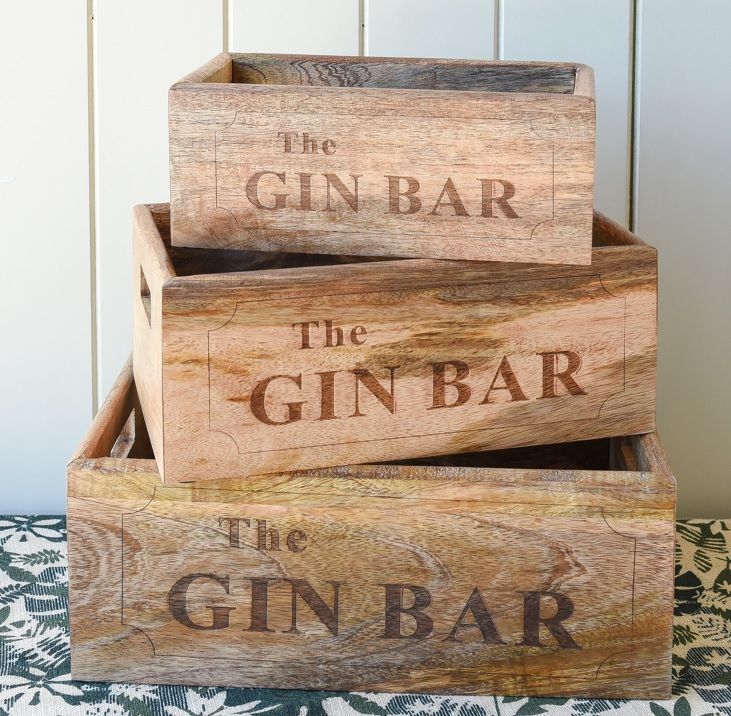 These set of 3 crates are a great decor set.  Also functional if you want to store items in them for display.  A fabulous addition to decorate your home.  2 other styles available.