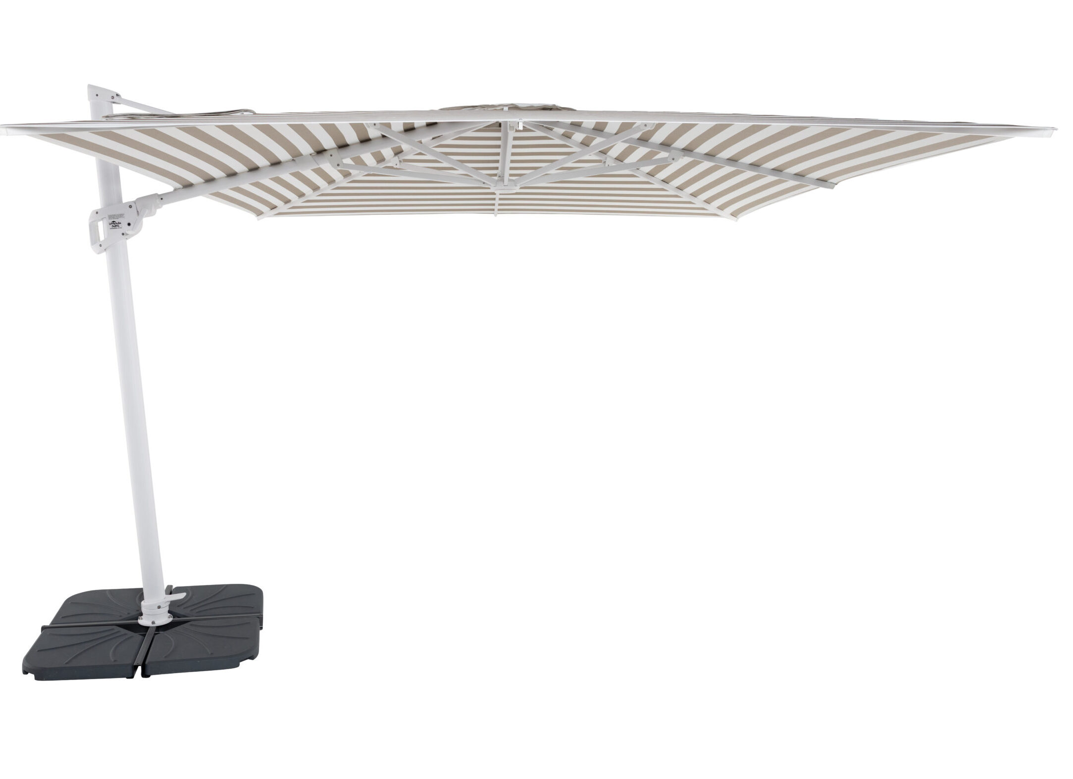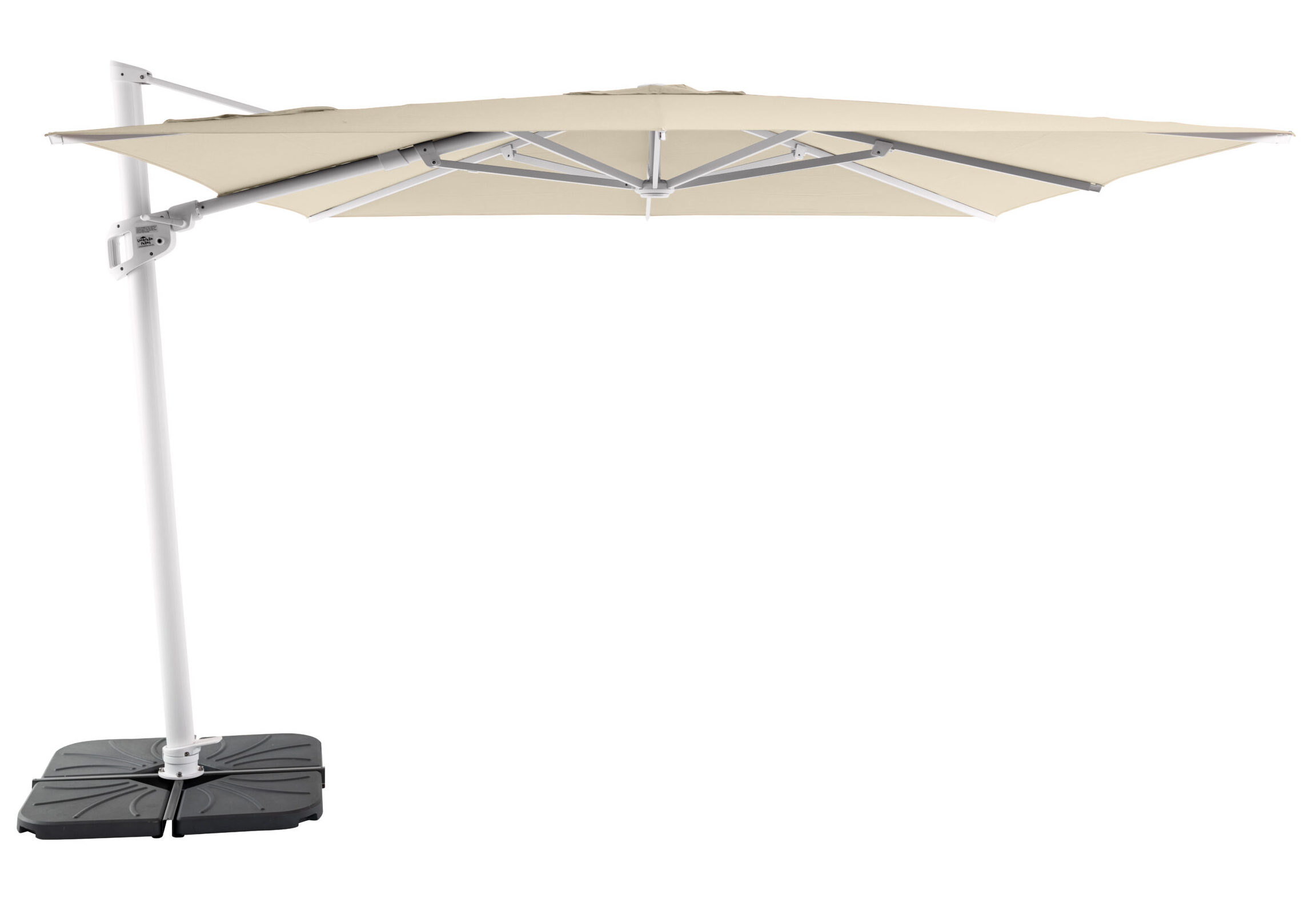 Use the included cross base frame for ballasting the umbrella in locations where bolting isn’t possible. You’ll need a minimum of 4 x 25kg concrete ballast weights (sold separately) for stability.