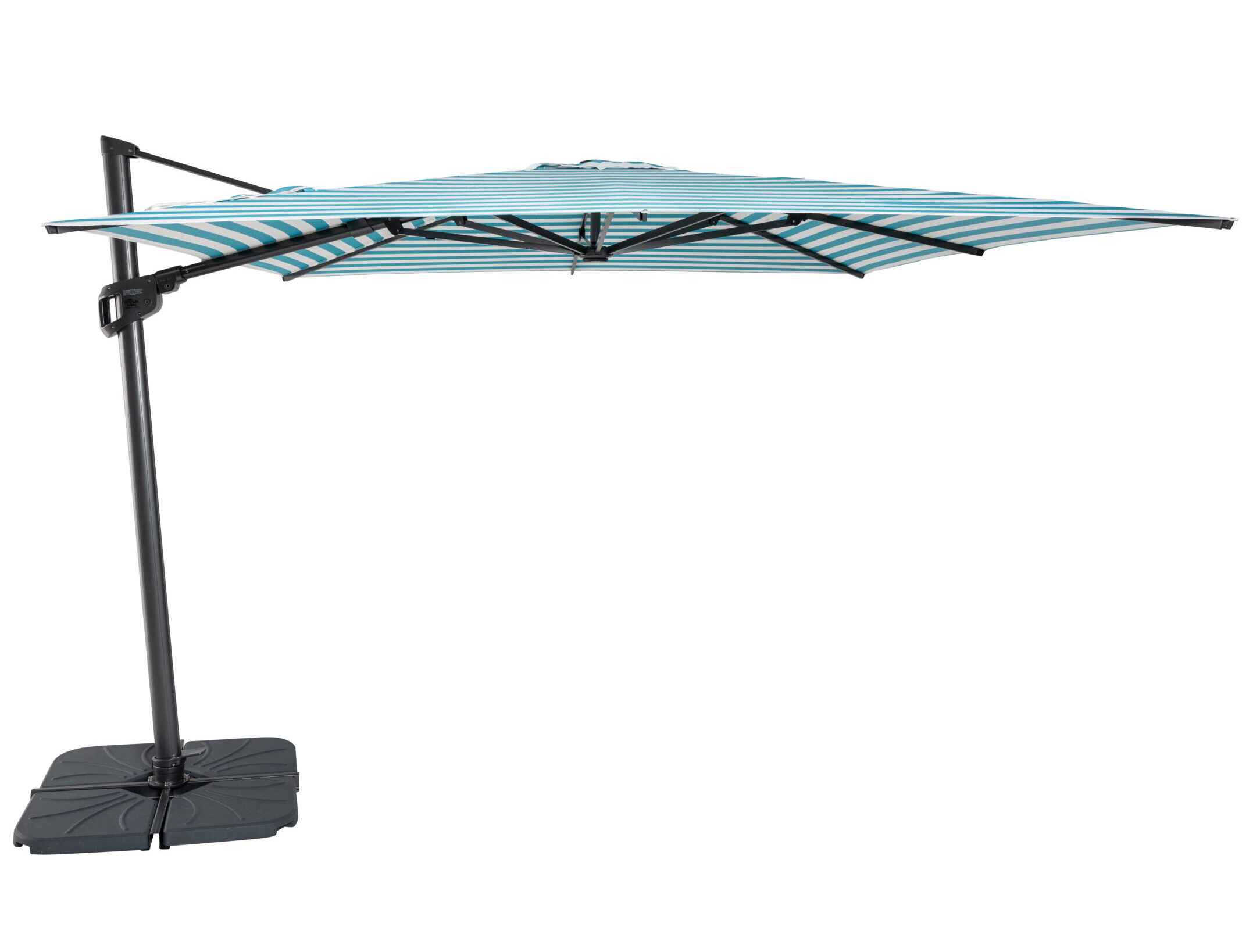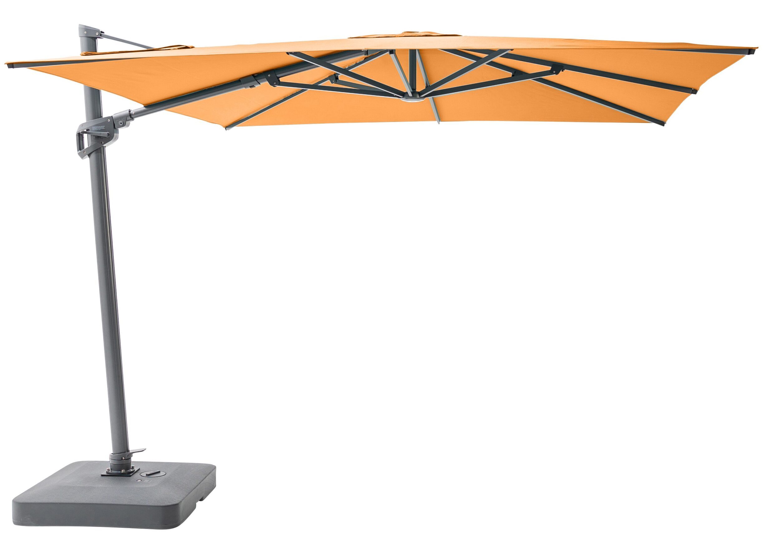 Designed for versatility and ease of use, the Solstice offers a double tilt function—allowing you to tilt the canopy backwards and side-to-side for ultimate sun coverage throughout the day. A 360° rotation mechanism with locking brake lets you adjust your shade effortlessly, while keeping the canopy secure even in light breezes.
